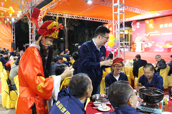 在派發(fā)紅包環(huán)節中,由董事長(cháng)周騰芳、總經(jīng)理周建新、副總經(jīng)理岑國明帶領(lǐng)導各分公司領(lǐng)導一起給現場(chǎng)所有員工派發(fā)了團年晚宴紅包,每位員工雙手接過(guò)紅包,并一一祝福承安集團生意興隆。